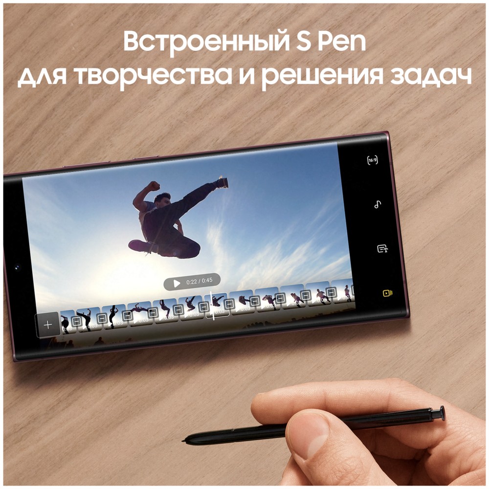 смартфон Samsung Galaxy S22 Ultra, перо S Pen, кабель USB Type-C, шпилька для извлечения SIM, документация